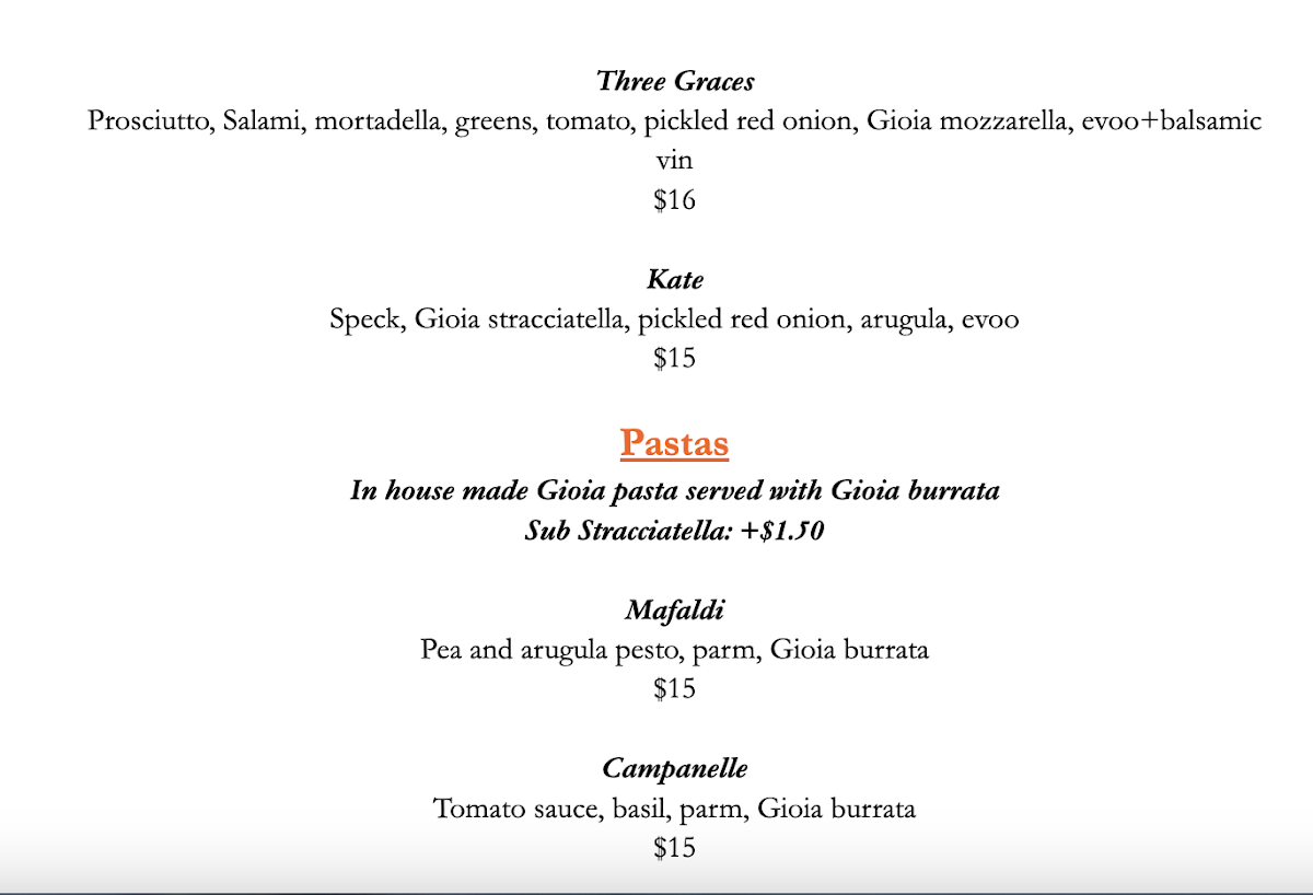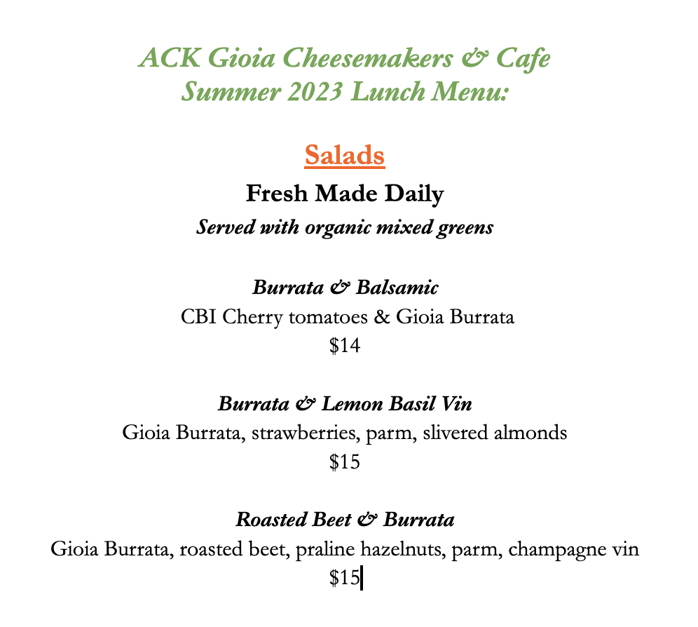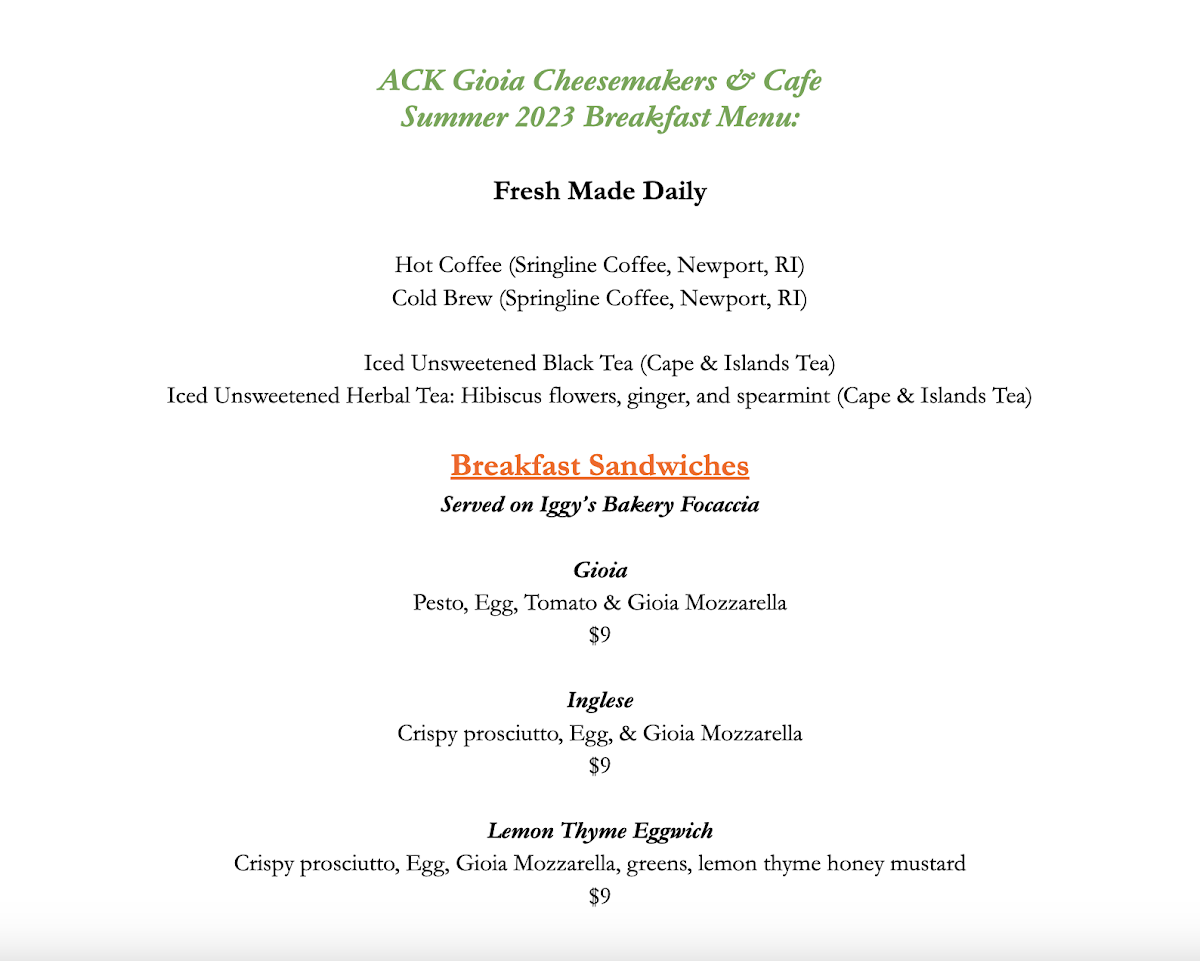 ACK Gioia Menu